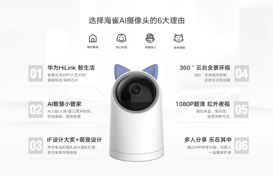 華為智選生態(tài)產(chǎn)品 海雀AI全景攝像頭(白色)(支持HUAWEI HiLink)